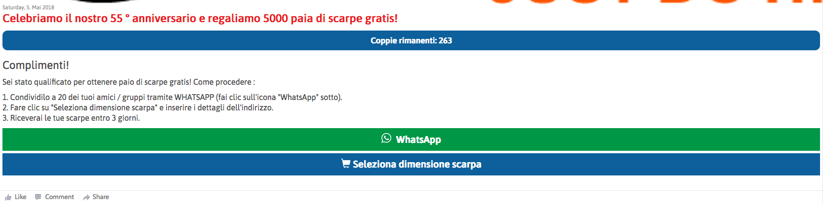 Si applicano anche a questo pseudo-sondaggio le stesse osservazioni del sondaggio “Ikea” e dei sondaggi simili legati a Coca Cola e Nutella: cliccare sul link indicato porta ad una pagina, sempre uguale e con la stessa struttura delle altre dove, per quante volte tu possa ripetere il sondaggio, ci sarà sempre un contatore con numero arbitrario di buoni disponibili, foto stock di modelli e modelle presi da siti di immagini con finte rassicurazioni e dove, sempre, invariabilmente alla fine del sondaggio si sarà condotti presso una pagina in cui si chiede di condividere ad altri sventurati la stessa catena per poi essere ammessi ad un menù che richiede di inserire una serie di dati personali per accedere al premio.
