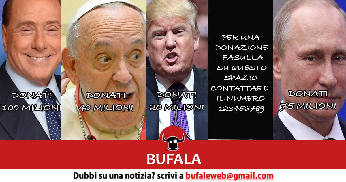 Tutte le Donazioni BUFALA di Berlusconi, Trump, Putin e Papa Francesco – bufale.net