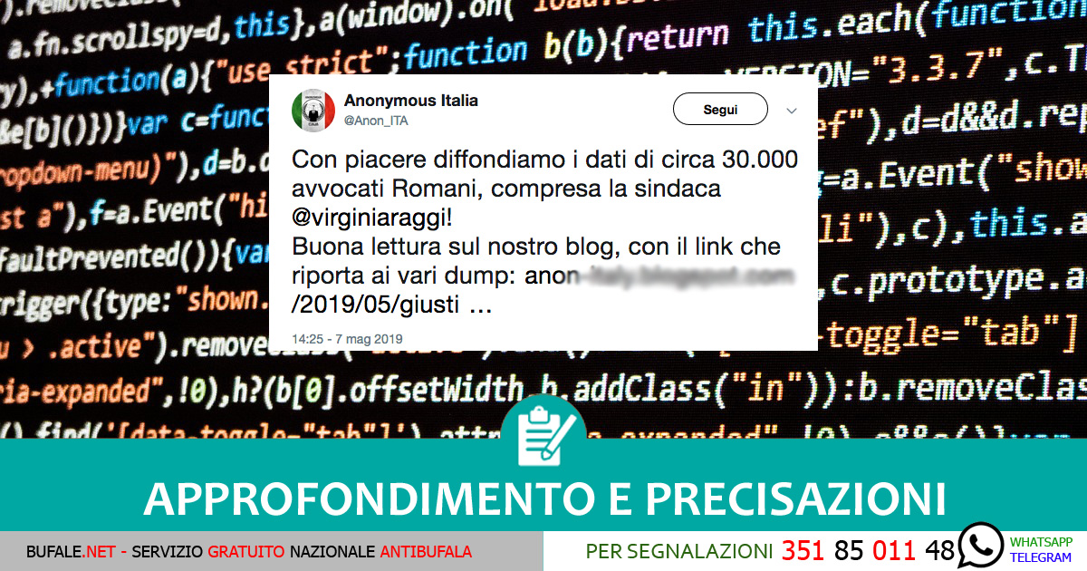Vantandosi, peraltro, di aver ottenuto i dati del Sindaco di Roma Virginia Raggi.