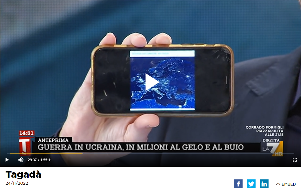 Parliamo di bufala, quindi, perché l’immagine mostrata in diretta su Tagadà e condivisa sui social non mostra l’Ucraina al buio in questo momento. Uno scatto notturno pubblicato dalla Nasa il 23 novembre 2022, a questo indirizzo, mostra una situazione completamente diversa.