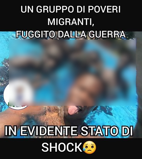 Insomma, un gruppo di ragazzi di colore che si diverte in piscina diventa una foto da dare in pasto ai propri contatti – o alla propria fan-zone – con la didascalia più scontata che si possa immaginare: “Un gruppo di poveri migranti, fuggito dalla guerra, in evidente stato di shock”.