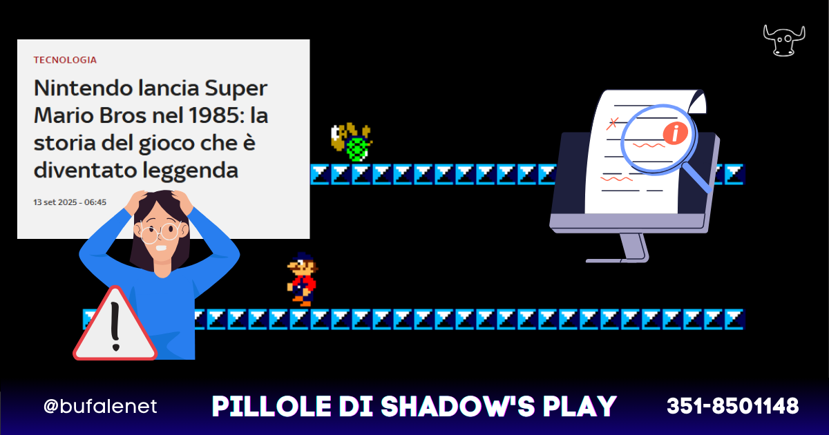 Sono arrivati i 40 anni di Super Mario Bros., e ci tocca benevolmente correggere la sezione tecnologia di Sky TG24 per il suo pezzo sul franchise. Pezzo che, come molti coccodrilli, avrebbe meritato un po’ di attenzione.