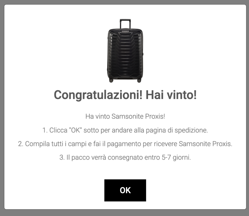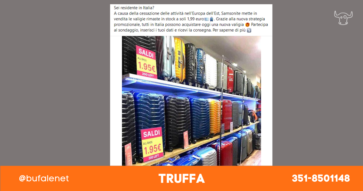 Valigie Samsonite Proxis a 1,95 Euro è già una notizia che odora di Phishing da chilometri.