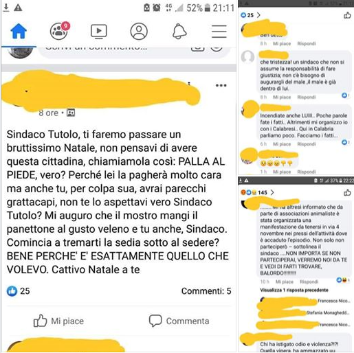 Le minacce al Sindaco per la sua presa di posizione