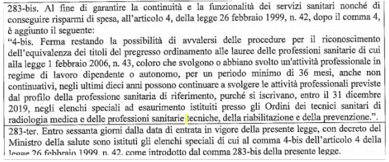 Una norma in bianco così detta, che consente di iscriversi ad appositi albi speciali da istituirsi presso gli ordini tecnici sanitari di radiologia medica e delle professioni sanitarie tecniche, della riabilitazione e della prevenzione.
