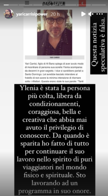 Nessun’altra informazione, ma ciò è stato sufficiente per usare frasi ad effetto come “Yari sgancia la bomba“, e per questo i famigliari di Ylenia, Yari compreso, sono dovuti intervenire per porre fine ai rumor sul ritrovamento della ragazza. Yari Carrisi, soprattutto, lo ha fatto nelle storie su Instagram.